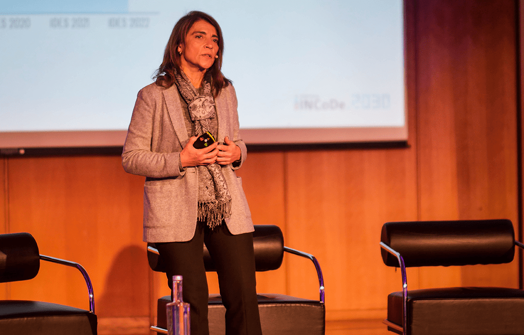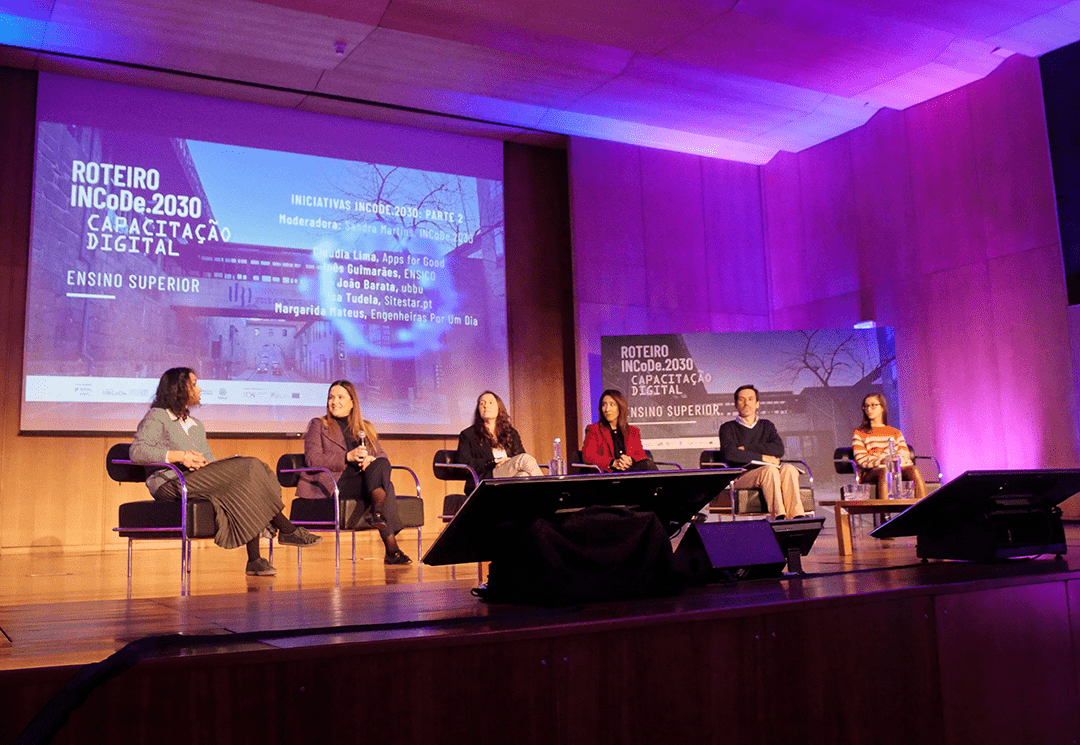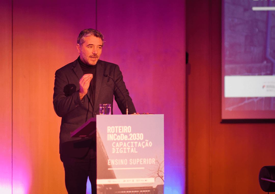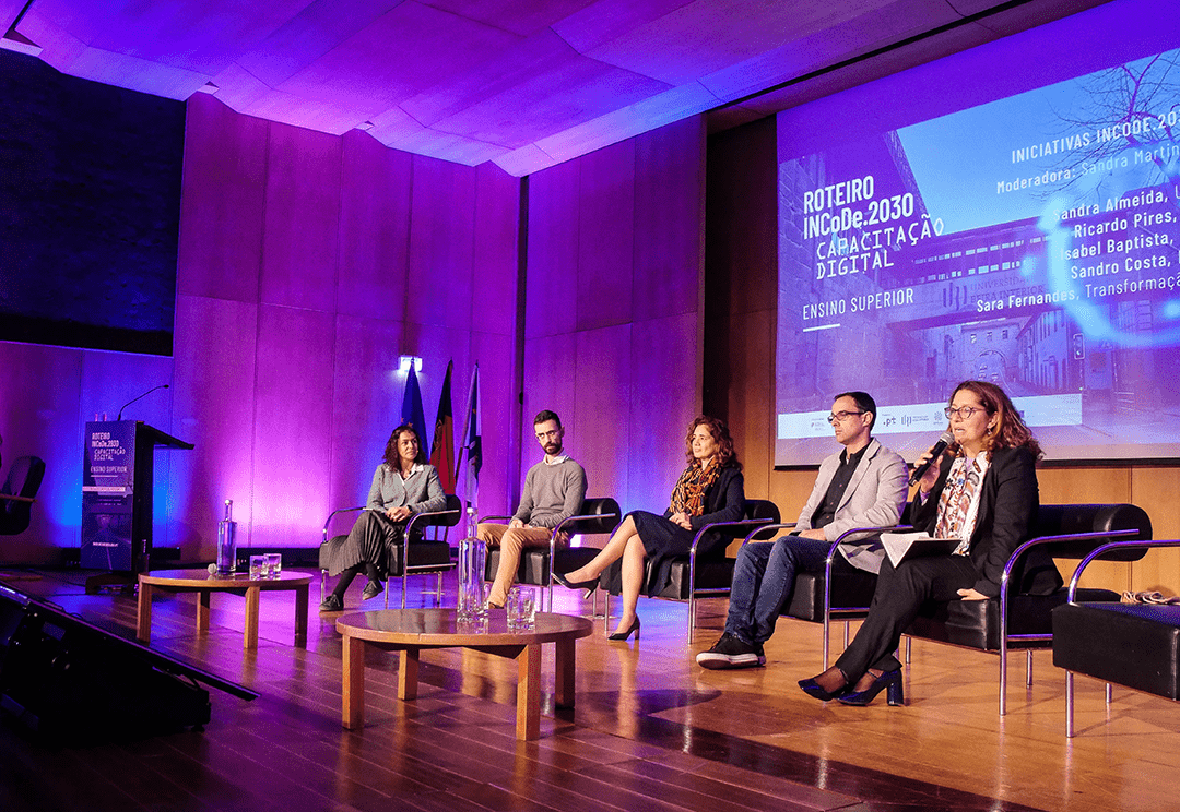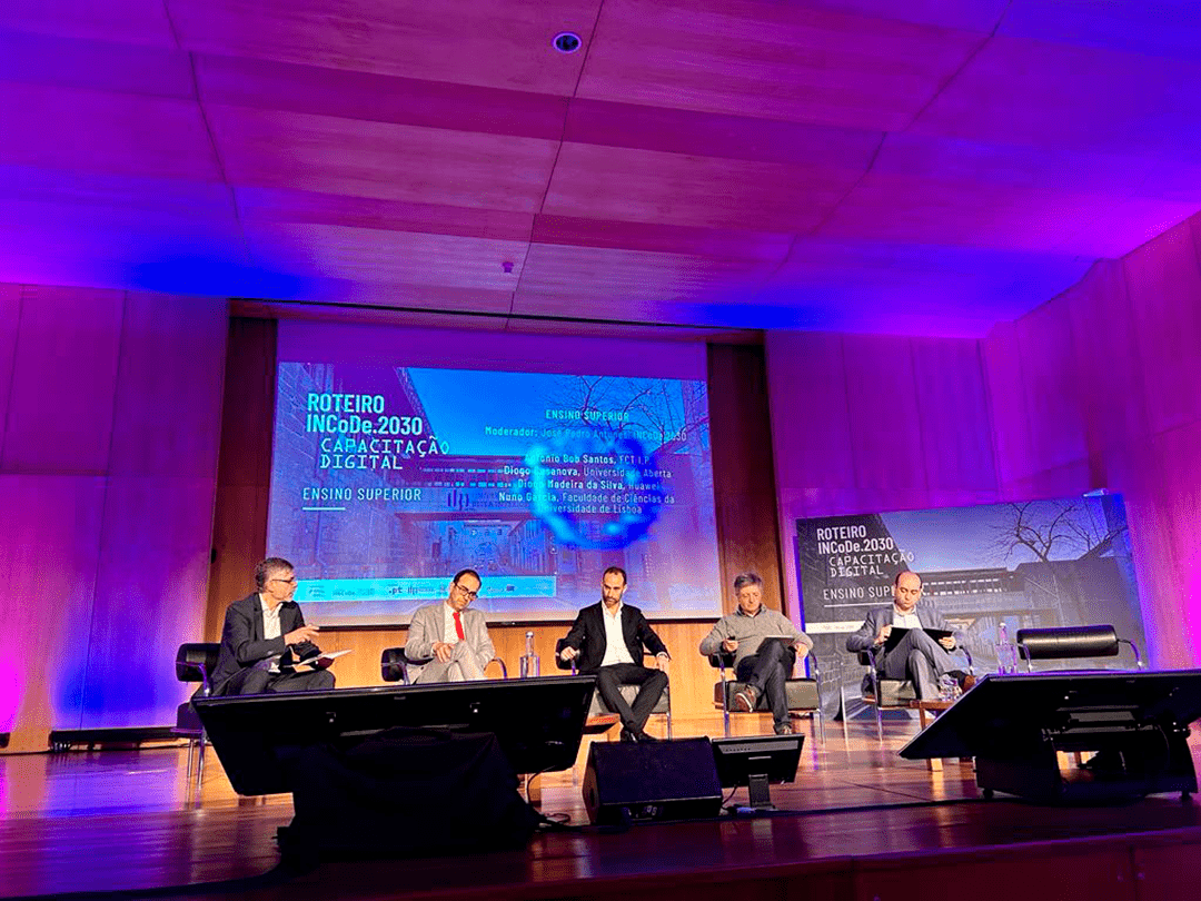 This was followed by a panel dedicated to the theme of the event, which was moderated by José Pedro Antunes, Executive Coordinator of INCoDe.2030, and with speakers António Bob Santos from the Foundation for Science and Technology, Diogo Casanova from Universidade Aberta, Diogo Madeira da Silva from Huawei and Nuno Garcia from the Faculty of Sciences of the University of Lisbon.
