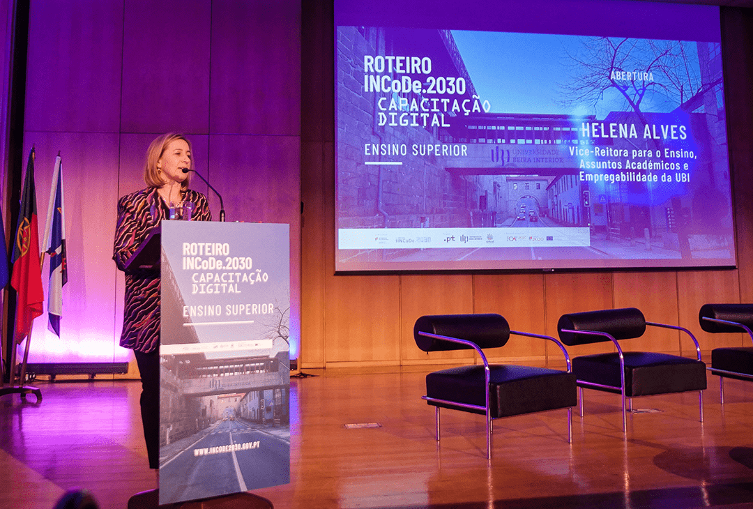 The Roadmap INCoDe.2030 - Digital Training passed through Covilhã, on the 3rd of March, to discuss the subject of Higher Education. Opening the session was the General Coordinator of INCoDe.2030, Luísa Ribeiro Lopes, the Vice-Rector for Teaching, Academic Affairs and Employability of the University of Beira Interior, Helena Alves, and Hélio Fazendeiro of the Municipality of Covilhã.