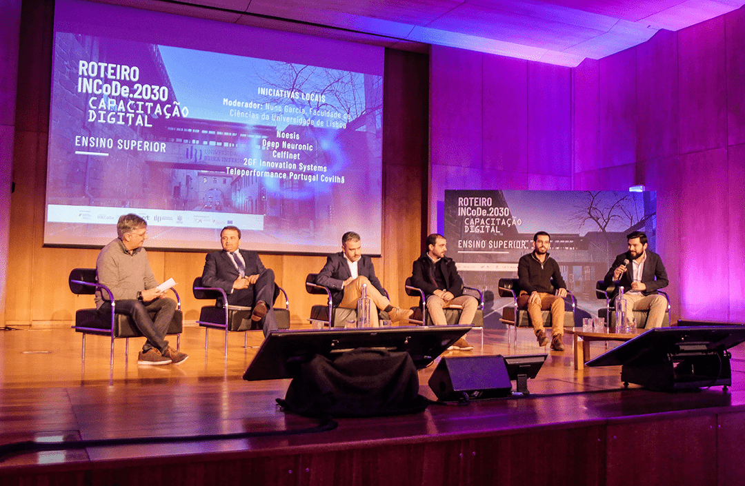 We then watched the presentation of initiatives that stand out in the Covilhã region, namely Noesis, Deep Neuronic, Celfinet, 2GF Innovation Systems and Teleperformance Portugal - Covilhã. Throughout the day, we also gave voice to some of the initiatives supported by INCoDe.2030: UPskill, PTSOC, C-Academy, NAU, Digital Transformation of Health, Apps for Good, ENSICO, ubbu, Sitestar.pt, Engenheiras for a day, I Am Digital.