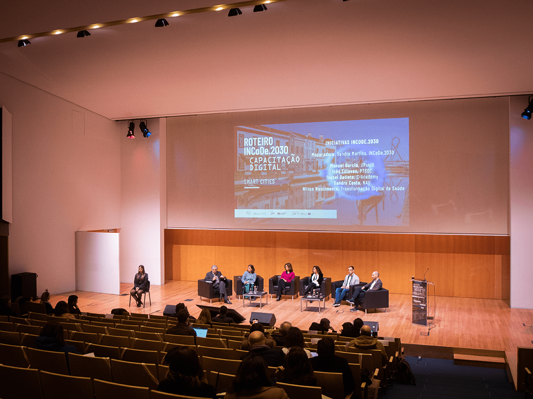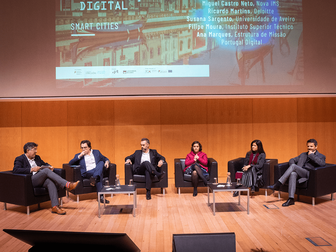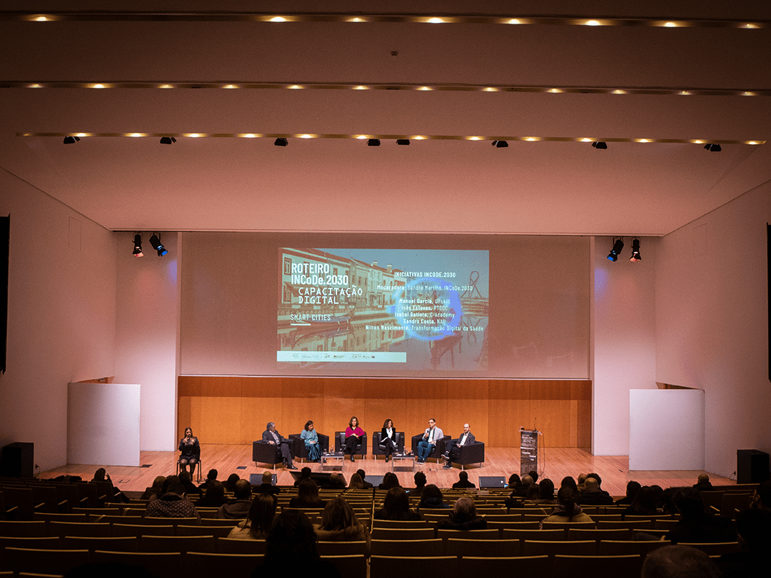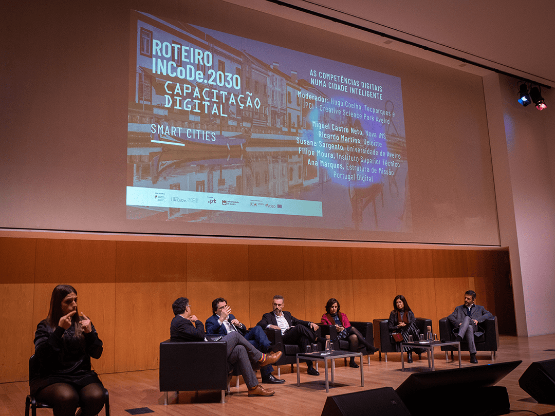 Afterwards, there was a panel that gave voice to initiatives that have the support of INCoDe.2030, and the presentation of the results of the pilot carried out in the region of Aveiro, within the scope of the National Survey of Digital Capacity Building Initiatives, carried out by INCoDe .2030 with support from Deloitte. This was followed by a panel dedicated to the theme of the event, which was moderated by Hugo Coelho from TecParques, and speakers Miguel Castro Neto from Nova IMS, Ricardo Martins from Deloitte, Susana Sargento from the University of Aveiro, Filipe Moura from Instituto Superior Técnico and Ana Marques from the Portugal Digital Mission Structure.