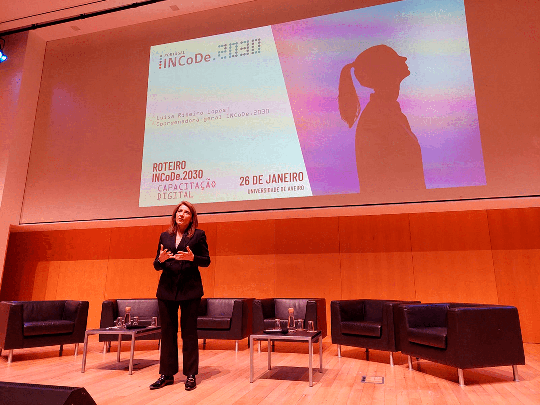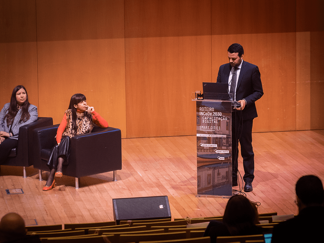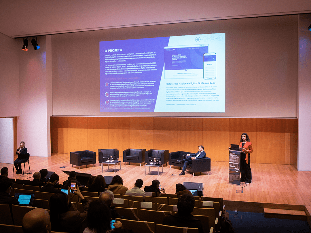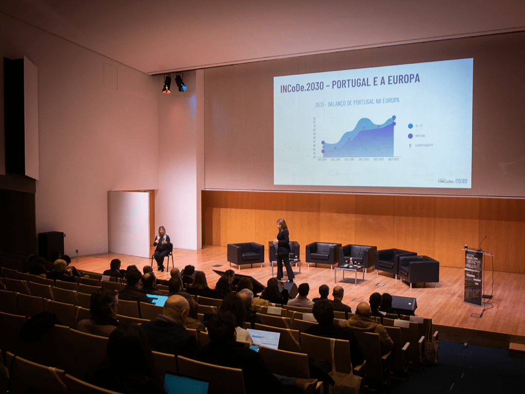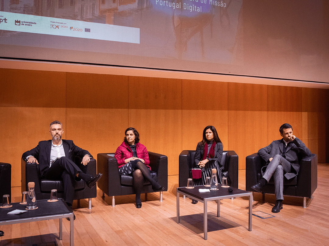 Afterwards, there was a panel that gave voice to initiatives that have the support of INCoDe.2030, and the presentation of the results of the pilot carried out in the region of Aveiro, within the scope of the National Survey of Digital Capacity Building Initiatives, carried out by INCoDe .2030 with support from Deloitte. This was followed by a panel dedicated to the theme of the event, which was moderated by Hugo Coelho from TecParques, and speakers Miguel Castro Neto from Nova IMS, Ricardo Martins from Deloitte, Susana Sargento from the University of Aveiro, Filipe Moura from Instituto Superior Técnico and Ana Marques from the Portugal Digital Mission Structure.