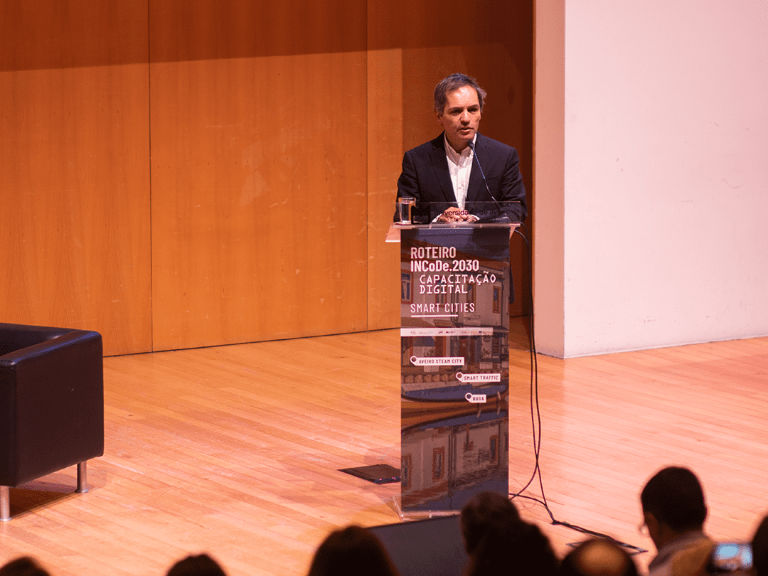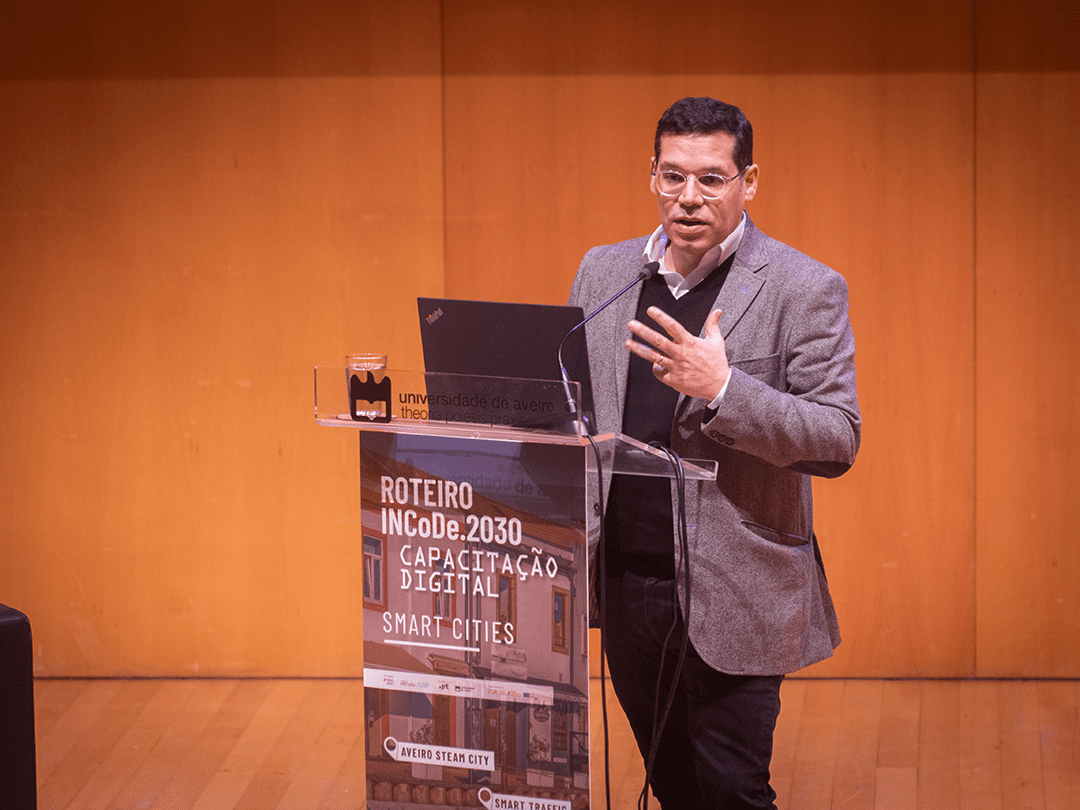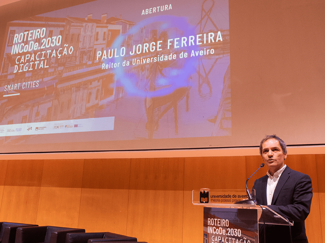 The Roadmap INCoDe.2030 - Digital Capacitation passed by the University of Aveiro, on the 26th of January, to debate the theme of Smart Cities. Opening the session was the Rector of the University of Aveiro, Paulo Jorge Ferreira, the General Coordinator of INCoDe.2030, Luisa Ribeiro Lopes, and the Mayor of Aveiro, José Ribau Esteves.