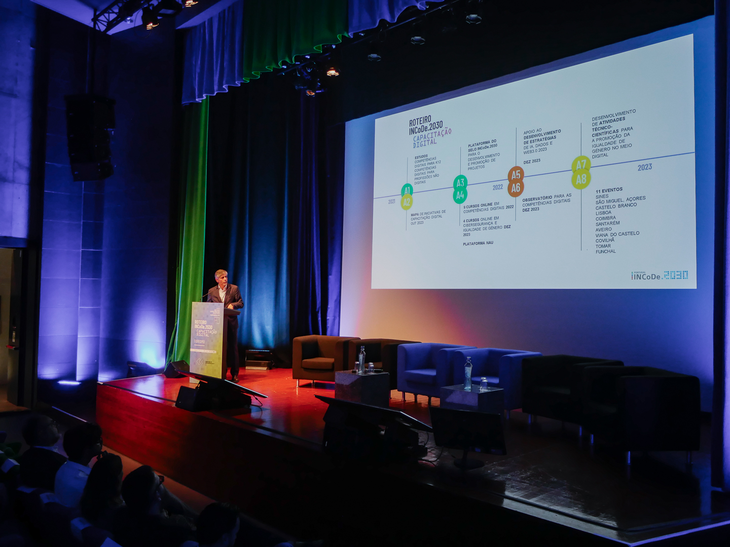 We also attended the presentation of some of the emblematic projects that promote digital training in Portugal: Engenheiras Por Um Dia, Ensico, Apps for Good, Happy Code Portugal /Technovation Girls, EUSOUDIGITAL, PTSOC, NAU, Transformação Digital da Saúde - SPMS and Rampa Digital ; and then to the presentation of initiatives that stand out in the Portimão region, namely the Portimão City Council (Green Spaces Division and Modernization and Information Systems Division), the Portimão Museum and Portugal by Food.